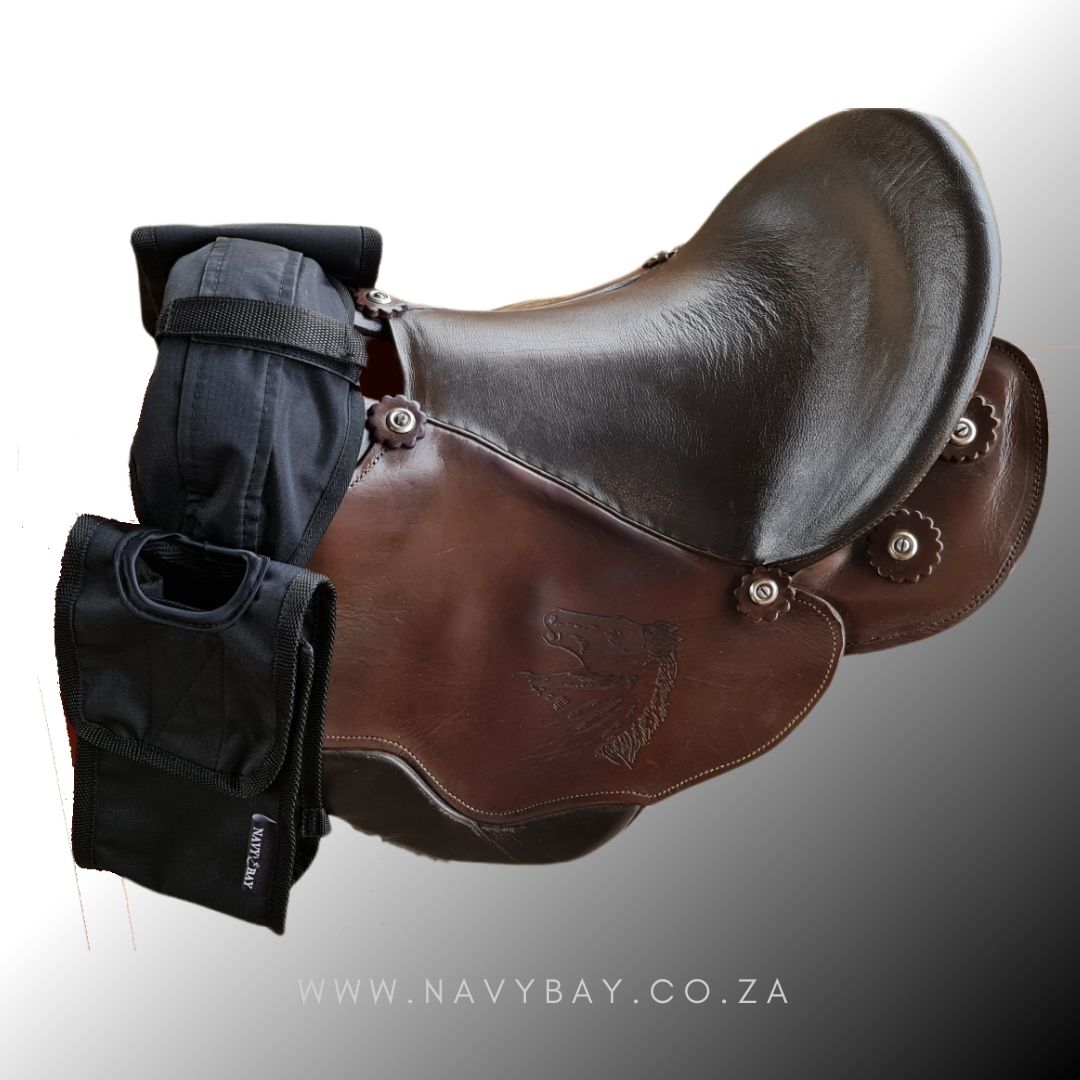 This double pocket canvas pommel bag is ideal for endurance or trail rides. One pocket is made to fit a drink or water bottle whilst the other is perfectly suited to other small necessities. Velcro straps secure the bag to the saddle to prevent and movement.