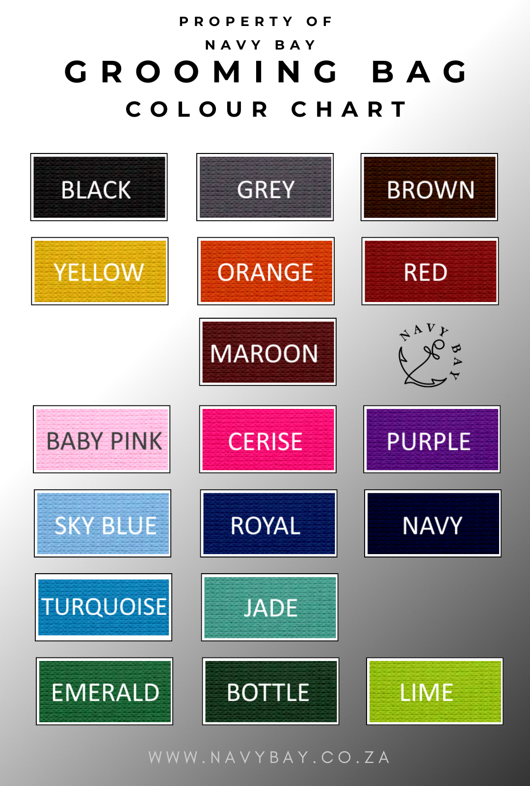 | Colour | Baby Pink, Black, Bottle Green, Brown, Cerise, Emerald, Grey, Jade, Maroon, Navy, Orange, Purple, Red, Royal Blue, Sky Blue, Turquoise, Yellow |
