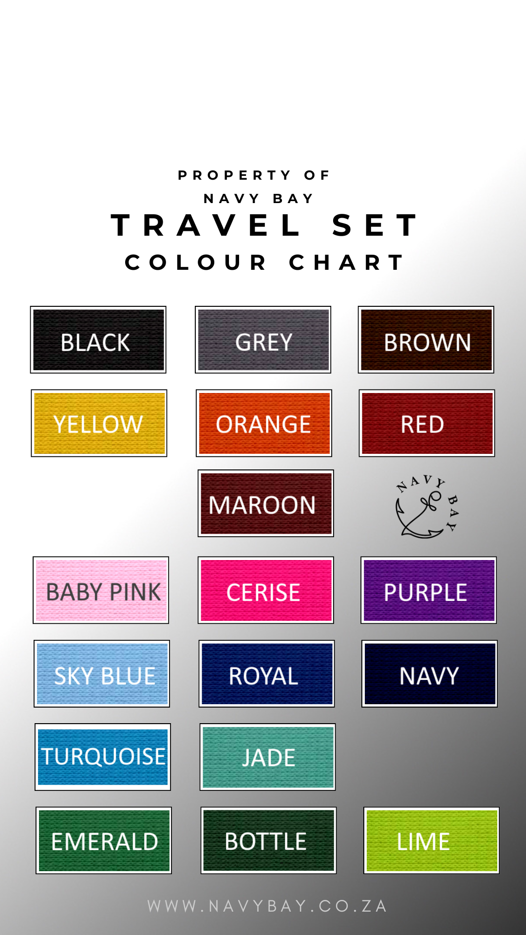 Baby Pink, Black, Bottle Green, Brown, Cerise, Emerald, Grey, Jade, Lime, Maroon, Navy, Orange, Purple, Red, Royal Blue, Sky Blue, Turquoise, Yellow